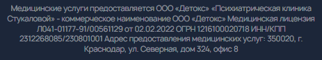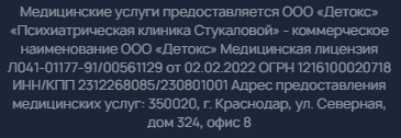 Медицинский центр лечения зависимостей Екатерины Стукаловой в Темрюке предлагает избавление от алкогольной и наркотической зависимости. Услуги врача необходимы при получении прав, поступлении в учебные заведения, на службу, а также во время прохождения освидетельствования. Записаться на прием к врачу можно по телефону или на официальном сайте.